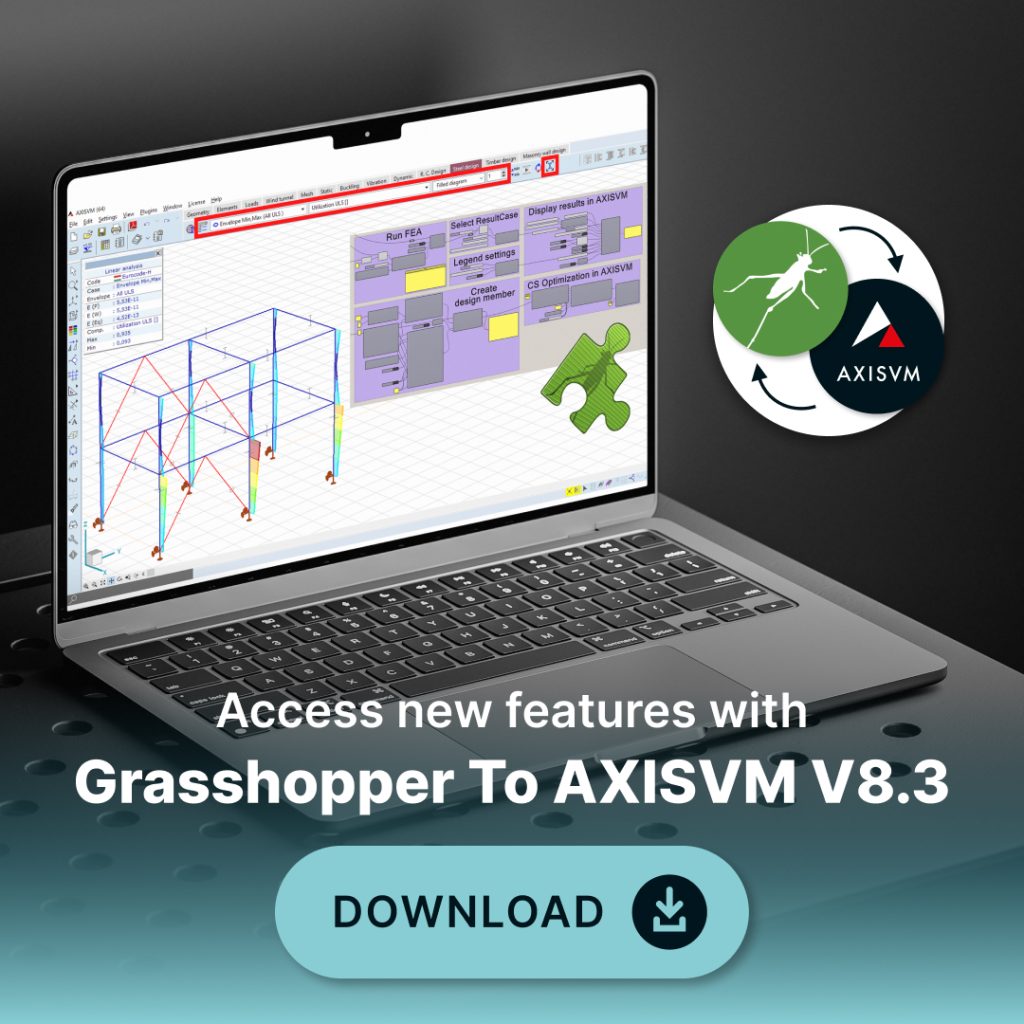 A kiegészítő kétirányú kapcsolatot biztosít az AXISVM és a Rhino/Grasshopper között.
